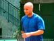 André n'étant pas au programme des matchs de la journée de charité, il devait tout de même venir s'entraîner. Cette année, ce fut sur le court numéro 2. Son sparring-partner du jour : le Français Edouard Roger-Vasselin. Le chanceux !