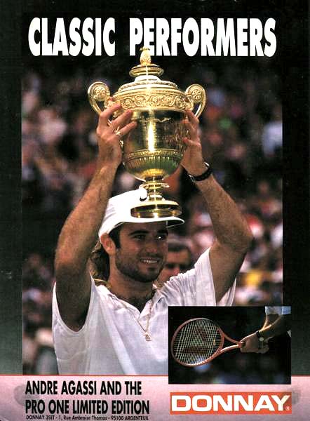 L'intronisation se fait en grande pompe à Couvin (Belgique) et Donnay lance rapidement des campagnes de publicités utilisant l'image d'Agassi. C'est avec une raquette Donnay - la Pro One - qu'André remporte son premier Grand Chelem en 1992 à Wimbledon.